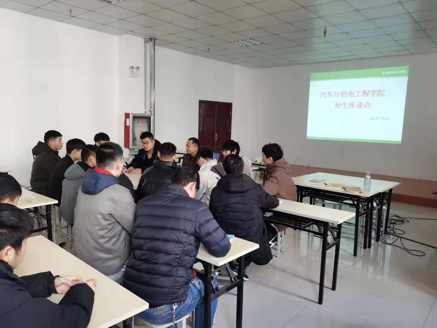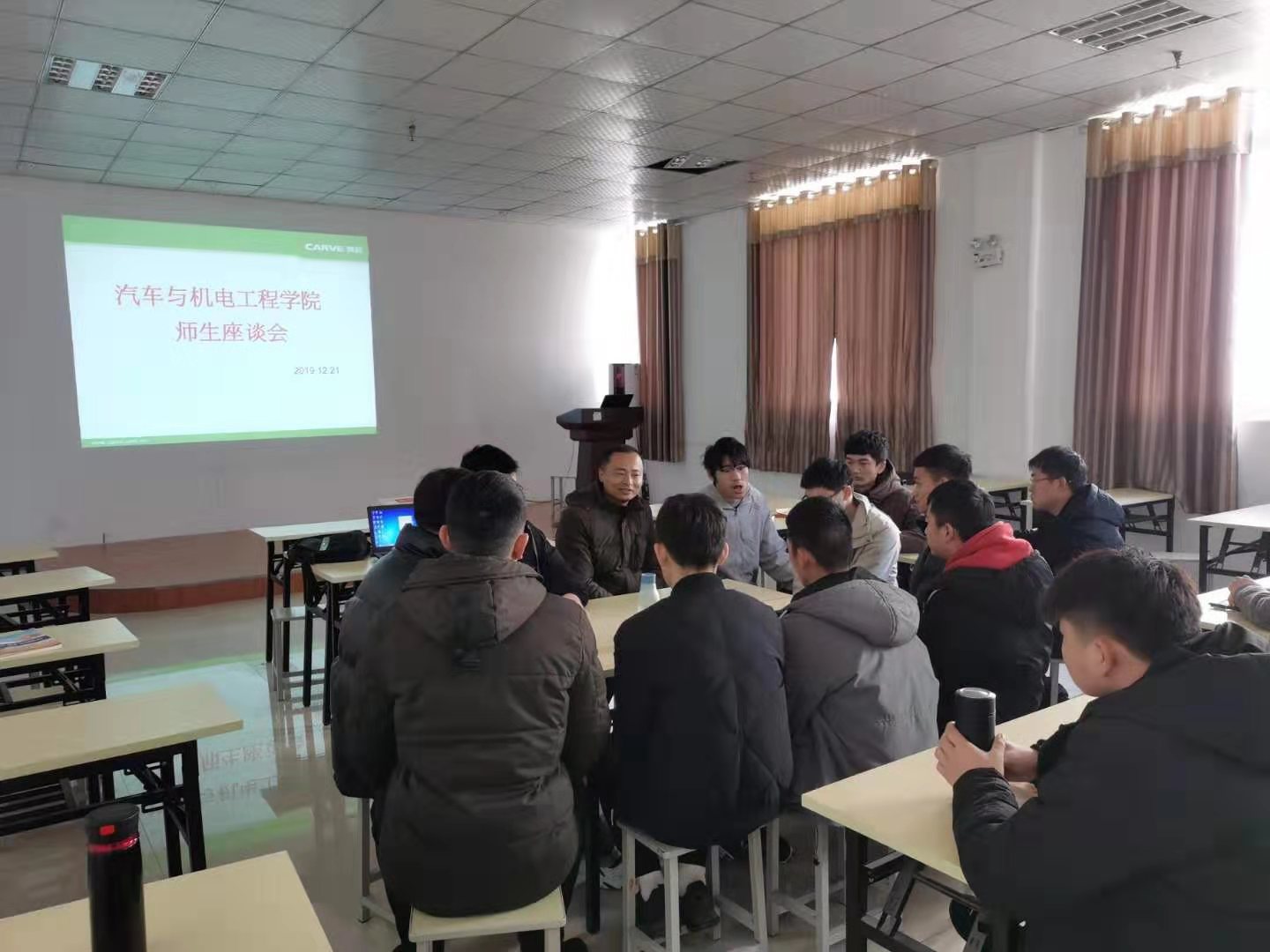为充分了解参加产教融合学生的思想动态,2019年12月21日上午,15vip太阳集团官网在沈丘河南凯旺科技有限公司会议室举办师生座谈会,院学生管理办主任田伟华和部分学生代表参加座谈会。 座谈会围绕 “学生在公司工作、思想理论学习、生活”等方面进行了深入交流,通过座谈,广大学生统一了思想,对自己的未来人生充满了希望和信心,同时大家一致同意要好好实习,遵守厂规厂纪,为学校争光!
