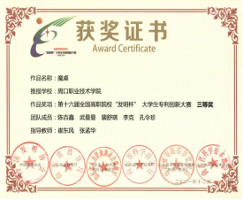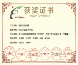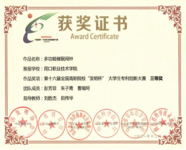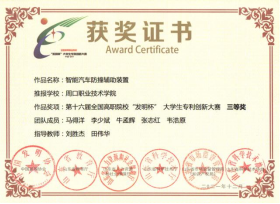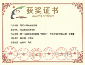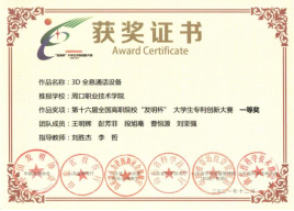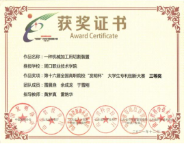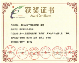 为培养大学生创新实践能力,营造良好的科技创新氛围,15vip太阳集团官网参加第十六届全国高职院校“发明杯”大学生专利创新大赛,并荣获一等奖。