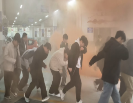演练开始,模拟汽车实训室内出现“火情”,浓烟弥漫。随着警报声响起,学生们在辅导员的指挥下,迅速按照应急方案,捂住口鼻,弯腰低姿,沿着指定疏散通道快速、有序地撤离至室外安全地带,整个过程紧张高效,井然有序。