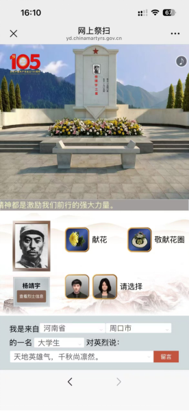 此次线上祭扫活动,让同学们接受了一次深刻的红色教育和精神洗礼,进一步厚植了家国情怀。同学们纷纷表示,将铭记先烈遗志,传承奋斗精神,立足专业学习,努力成长为担当民族复兴大任的时代新人。
